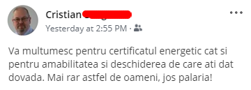 Peste 2.000 clienți mă recomandă: dacă întâmpini probleme din cauza certificatului energetic, primești înapoi contravaloarea acestuia.